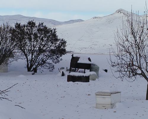 | Sorry about that - this little guy by the house never made it to the storage, but bees can survive outside as well, provided they have enough food stores. |