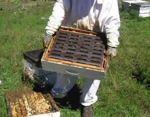 Removing the comb honey super.